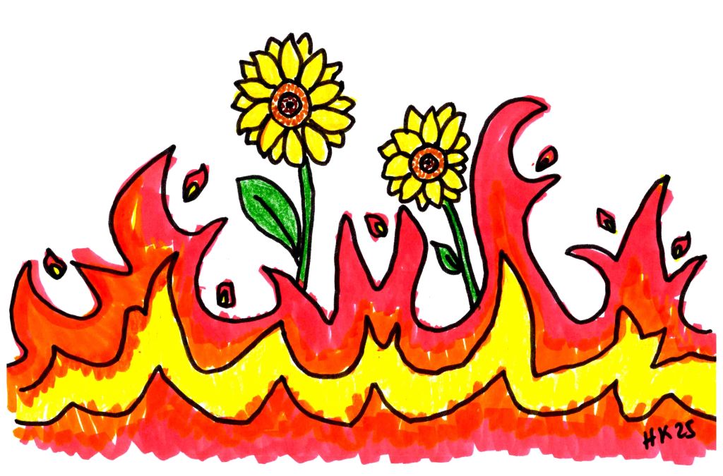girasoles y rosales.